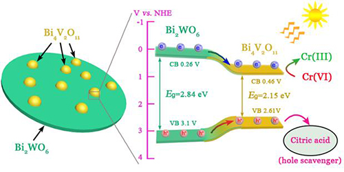 我们的研究内容已发表到SCI期刊《New Journal of Chemistry》(2018, Vol.42, pp. 647-653)上,其论文题目为《Construction of the Bi2WO6/Bi4V2O11 heterojunction for highly efficient visible-light driven photocatalytic reduction of Cr(VI)》(http://pubs.rsc.org/en/content/articlehtml/2018/NJ/C7NJ03413J)。