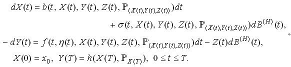 우리는 분수브라운운동에 관한 련립평균마당 정-역방향확률미분방정식을 처음으로 제기하고 연구하였다.