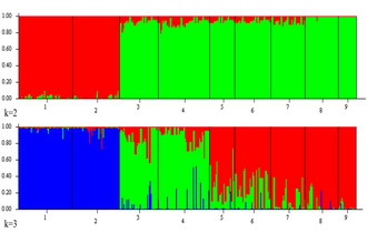 동부집단(대립유전자풍부도: 10.7~19.5)과 서부집단(대립유전자풍부도: 10.3~10.7)에서 북부(대립유전자풍부도: 6.7~8.8)집단보다 유전적다양성이 더 높다는것이 밝혀졌다.⋯