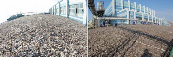 Looking with a beaming face at the on-board conveyer continuously scooping up fish from the hold of the ship forming a fish waterfall in the outdoor landing site, he said he was pleased with the port filled with fishy smell because the parents who had sent their children for military service for national defence would be very pleased.