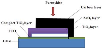 Hole conductor-free, fully printable mesoscopic perovskite solar cells with carbon electrode have a good commercialization prospect because of low-cost production and high power conversion efficiency. Currently, the problem of improving the stability of perovskite solar cells is very important for commercialization.