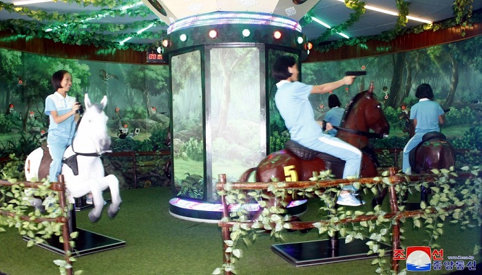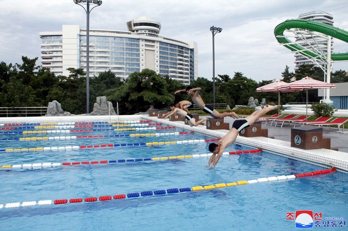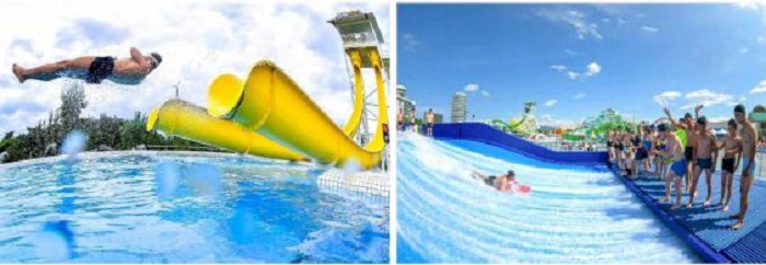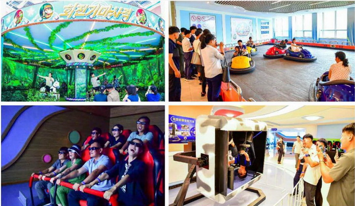 급강하물미끄럼대를 따라 내려지치며 쾌감을 한껏 느끼는 인민의 웃음이 명사십리야외물놀이장에 만발하고있다.