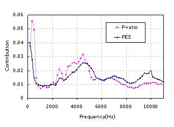 전통적인 F-비와 제안된 PES-SID사이의 주요한 차이는 발성자개인성정보에 대한 주파수령역들의 기여도곡선에서 나타난다. 전통적인 F-비에 포함되여있던 주파수분포의 예리한 봉우리들을 PES-SID에서는 찾아볼수 없다. 이러한 예리한 봉우리들이 비음이나 유성음, 무성음들에서의 특징을 맹목적으로 평균함으로써 산생된것이라고 볼수 있는데 이것은 전통적인 F-비에 기초한 방법이 발성자간분포에 대한 발성자내부분포의 평균비률에 대해서만 관심하는것으로 하여 음소들의 차이성분까지 포함하기때문이다. PES-SID 방법을 리용할 때에는 매 음소들을 개별적으로 처리하여 음소들사이 차이를 억제하게 되며 따라서 전통적인 F-비의 결함을 극복하고 보다 믿음직한 발성자정보를 제공한다.